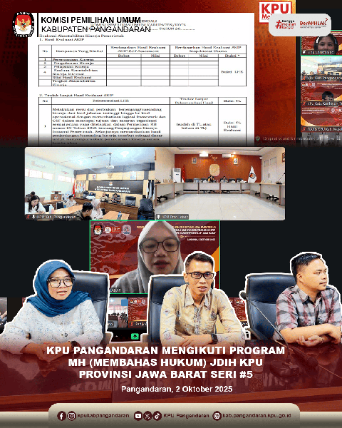 #TemanPemilih, KPU Kabupaten Pangandaran mengikuti kegiatan PROGRAM MH (MEMBAHAS HUKUM) JDIH KPU PROVINSI JAWA BARAT SERI #5 yang dilaksanakan secara online pada hari Kamis tanggal 2 Oktober 2025.
