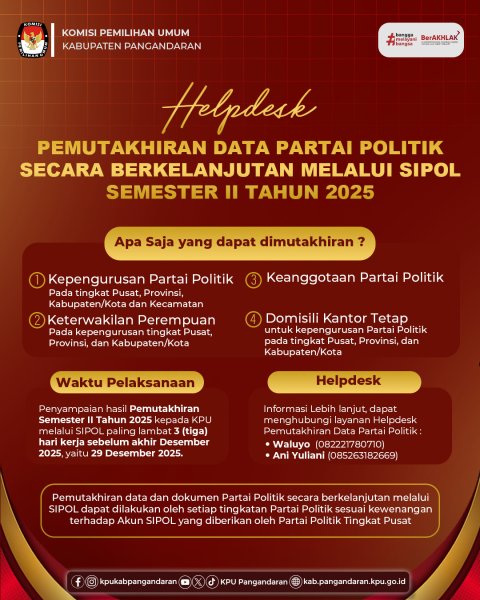 ???? Butuh informasi lebih lanjut? Hubungi Helpdesk Pemutakhiran Data Partai Politik KPU Kabupaten Pangandaran :