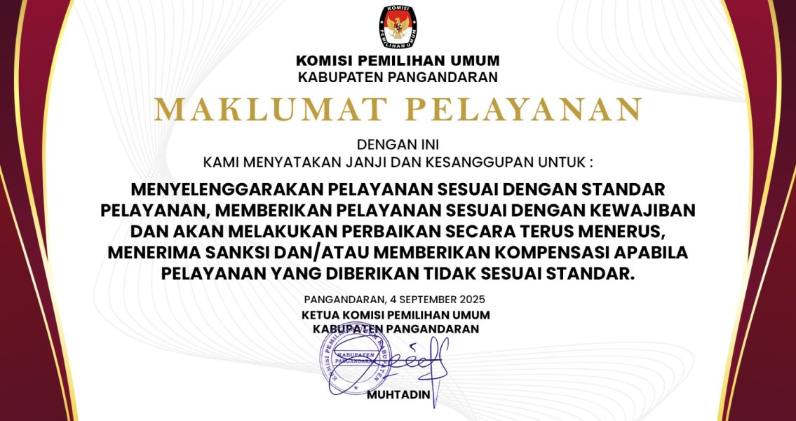 Berikut Maklumat Pelayanan KPU Kabupaten Pangandaran Tahun 2025.