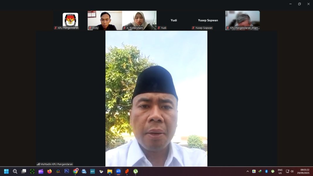 Pangandaran – KPU Kabupaten Pangandaran melaksanakan apel pagi rutin pada Senin (29/09/2025) secara daring. Ketua KPU Kabupaten Pangandaran, Muhtadin, bertindak sebagai pembina apel.