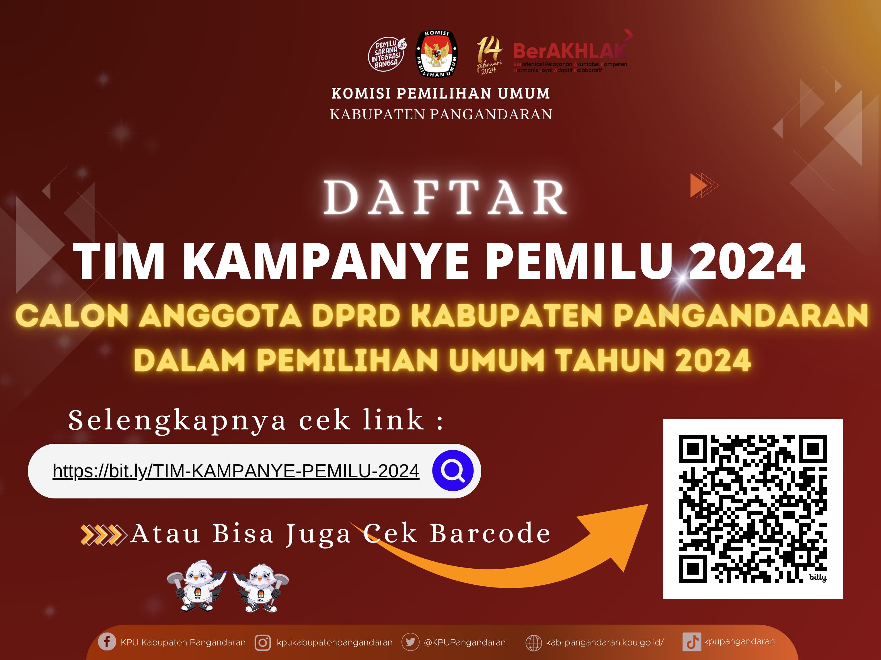 Berikut disampaikan Pengumuman Nomor 263/PL.01.6-SD/3218/2023 tentang Pendaftaran Pelaksana Kampanye, Tim Kampanye dan Akun Media Sosial Peserta Pemilu Tahun 2024, tingkat Kabupaten Pangandaran.